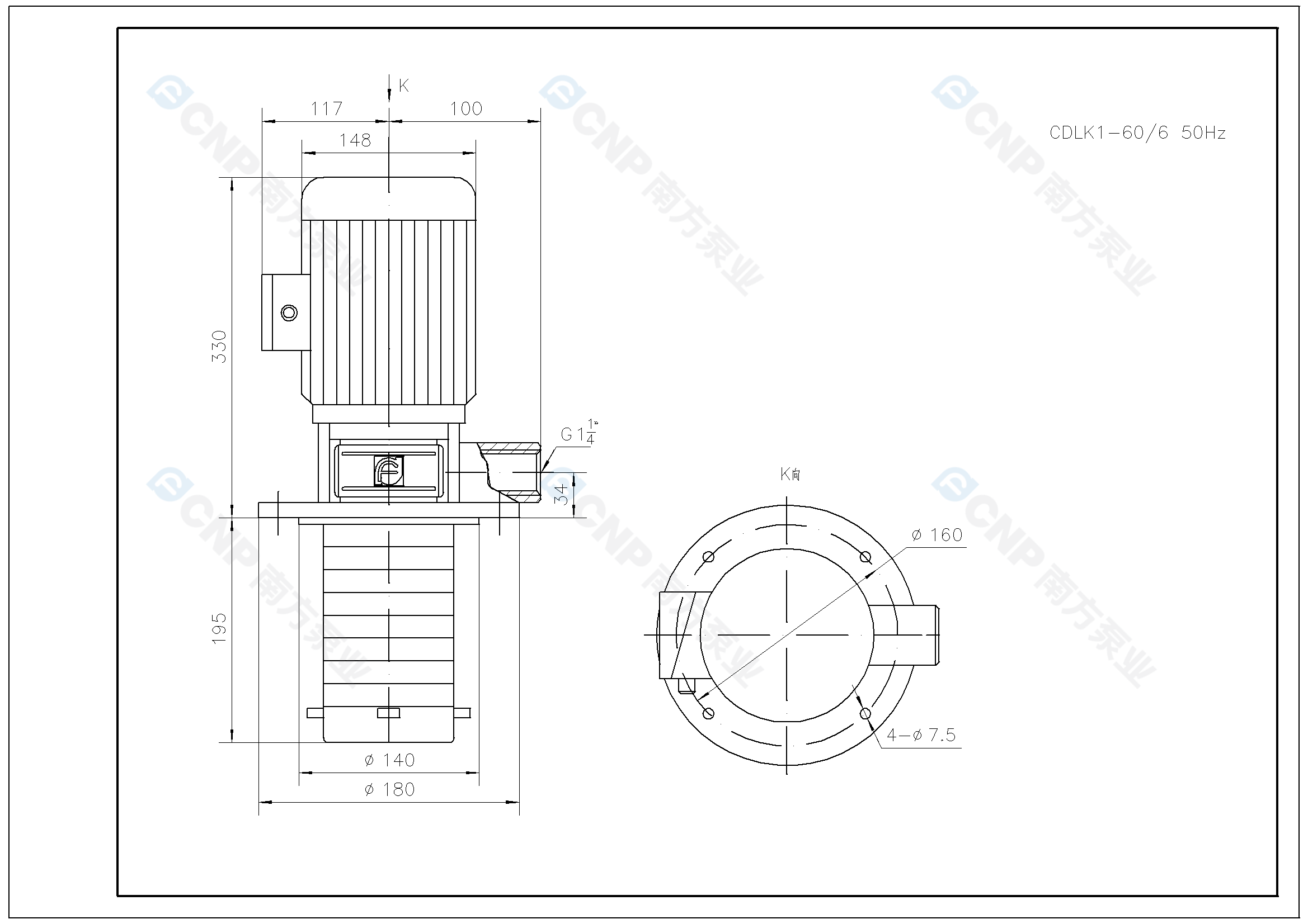 需要南方泵CDLK1-60/6外形CAD文件 請加銷售人員微信索取